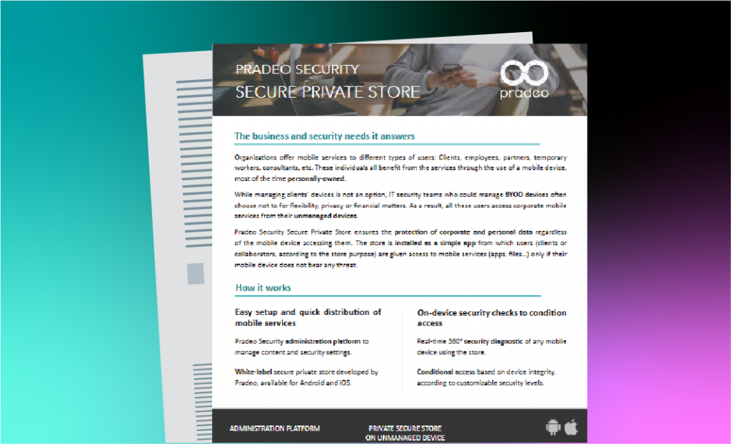 Delve into our white papers to explore in-depth analysis of cybersecurity challenges, and best practices. Benefit from expert insights and stay ahead of evolving threats with Pradeo’s knowledge resources.